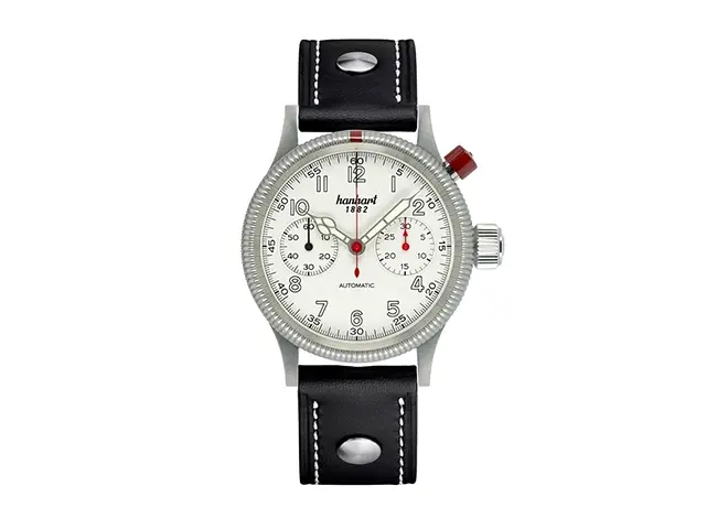 Sa construction robuste et éprouvée facilite son entretien, tout en assurant une grande fiabilité dans le temps. Ce choix de calibre permet à Hanhart de proposer une montre à la fois technique, durable et fidèle à son héritage horloger.