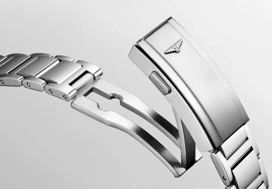 Les cadrans proposés présentent des finitions soleil dans différentes couleurs — bleu, noir, vert ou brun — chacune accompagnée d’index appliqués et d’aiguilles recouverts de Super-LumiNova pour une lisibilité maximale en conditions de faible luminosité. L’échelle des 24 heures de la fonction GMT est intégrée en périphérie du cadran, facilitant la lecture du second fuseau horaire. La collection HydroConquest GMT se décline avec différents bracelets : un bracelet en acier inoxydable à maillons en forme de H avec fermoir déployant à micro-ajustement, des bracelets en caoutchouc bleu ou noir, ainsi que des options NATO dans des teintes kaki ou beige pour un style plus aventureux. Cette diversité de finitions permet d’adapter la montre à des usages sportifs ou plus habillés sans compromettre son caractère technique.