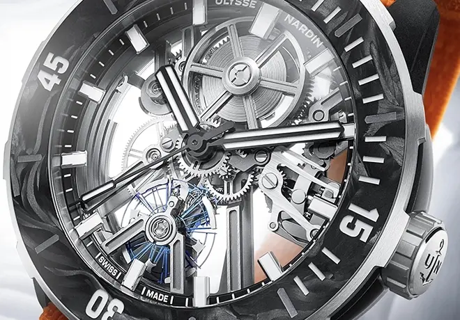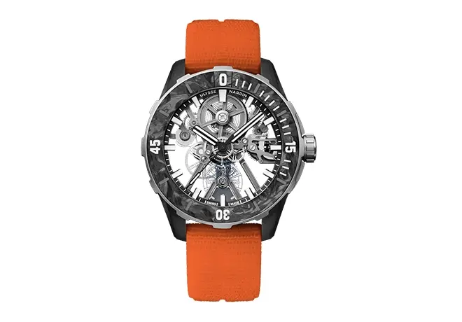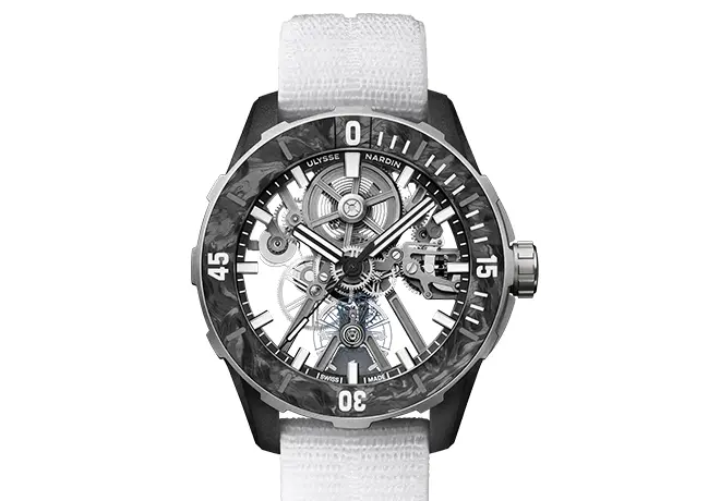 La Diver Air s’inscrit dans cette tradition en proposant une approche radicalement moderne de la montre de plongée. Elle se distingue par sa construction allégée, son design squeletté et son utilisation de matériaux innovants comme le titane, le silicium ou encore des composites avancés. Malgré cette quête de légèreté, elle conserve les fondamentaux d’une véritable plongeuse : robustesse, lisibilité et étanchéité. Pensée pour les amateurs de haute horlogerie contemporaine, elle incarne la capacité d’Ulysse Nardin à repousser les limites techniques tout en conservant un lien fort avec son ADN maritime.