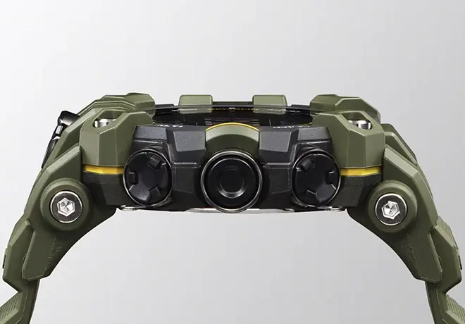 Le boîtier de grande taille assure une robustesse accrue, tandis que le bracelet en résine garantit confort et résistance. L’ensemble est conçu pour résister aux chocs, aux vibrations et aux conditions extrêmes, fidèle à l’ADN G-SHOCK.