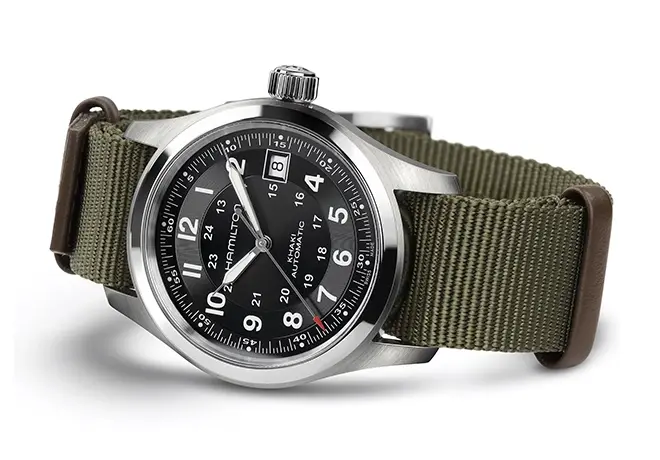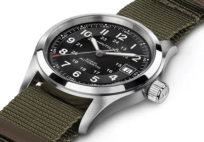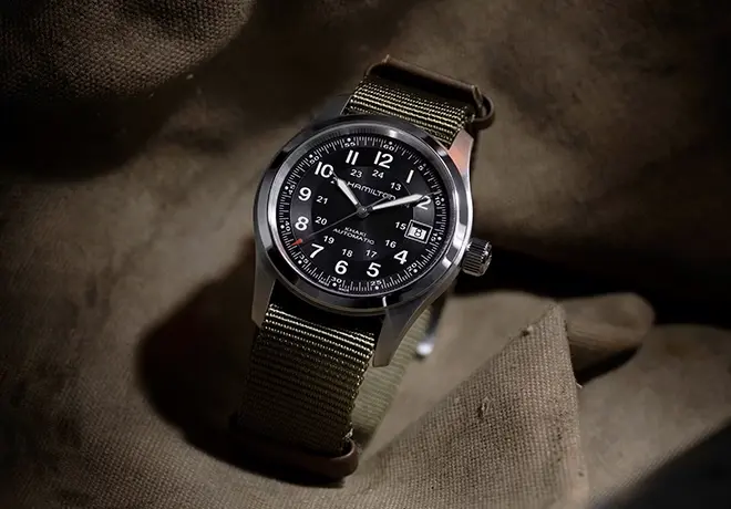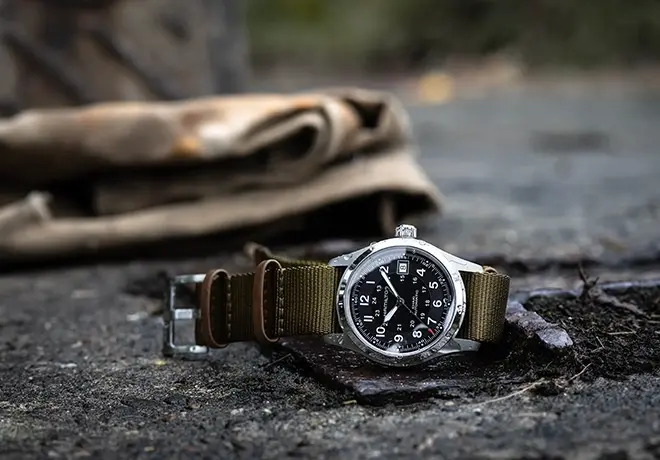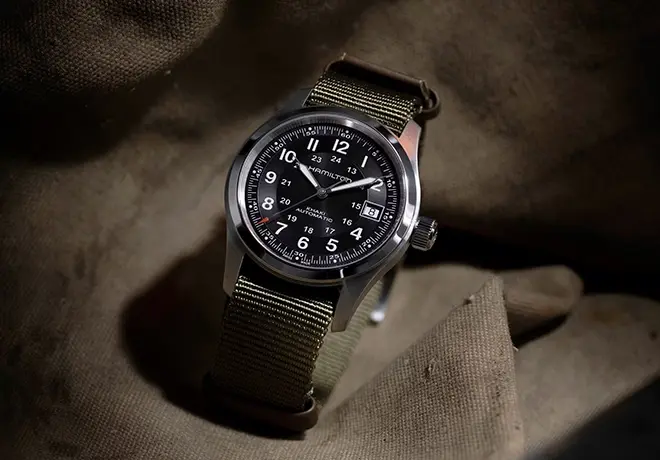 Hamilton est historiquement reconnue pour ses montres militaires, utilisées depuis le début du XXe siècle par différentes forces armées. La collection Khaki Field est aujourd’hui l’héritière directe de cet ADN, combinant robustesse, lisibilité et fonctionnalité.