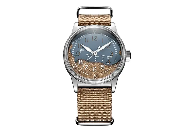 - Cadran unique avec sable réel d’Utah Beach
